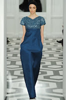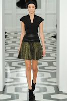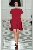 Victoria Beckham's Fall 2011 Ready to Wear collection doesn't look like too much at first glance, but I actually think it's brilliant! It's very simplistic, but embellished with architecture and a unique use of colors. I think Beckham really understands clothing, having been a fashion plate for so many years. She creates frocks that are extremely wearable in real life and while they are very fashionable, she doesn't overthink the look. These looks are all very simple and chic, perfect for the modern woman on the go. These pictures are some of my favorite looks from the collection.
