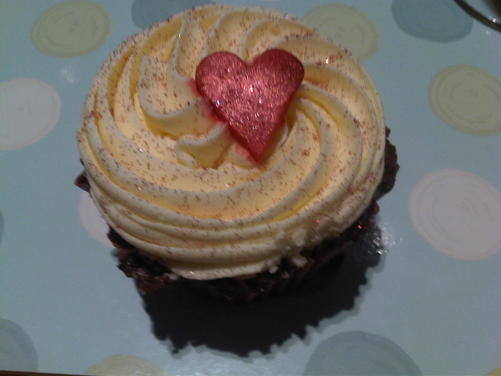 We then came home for dinner. I'm not really into the overpriced, turn and burn scenario that accompanies restaurants on Valentine's Day. I picked up Sushi Rolls for our appetiser and then made filet steaks with mashed potatoes and corn. This is a close-up of my cupcake desert! So pretty!