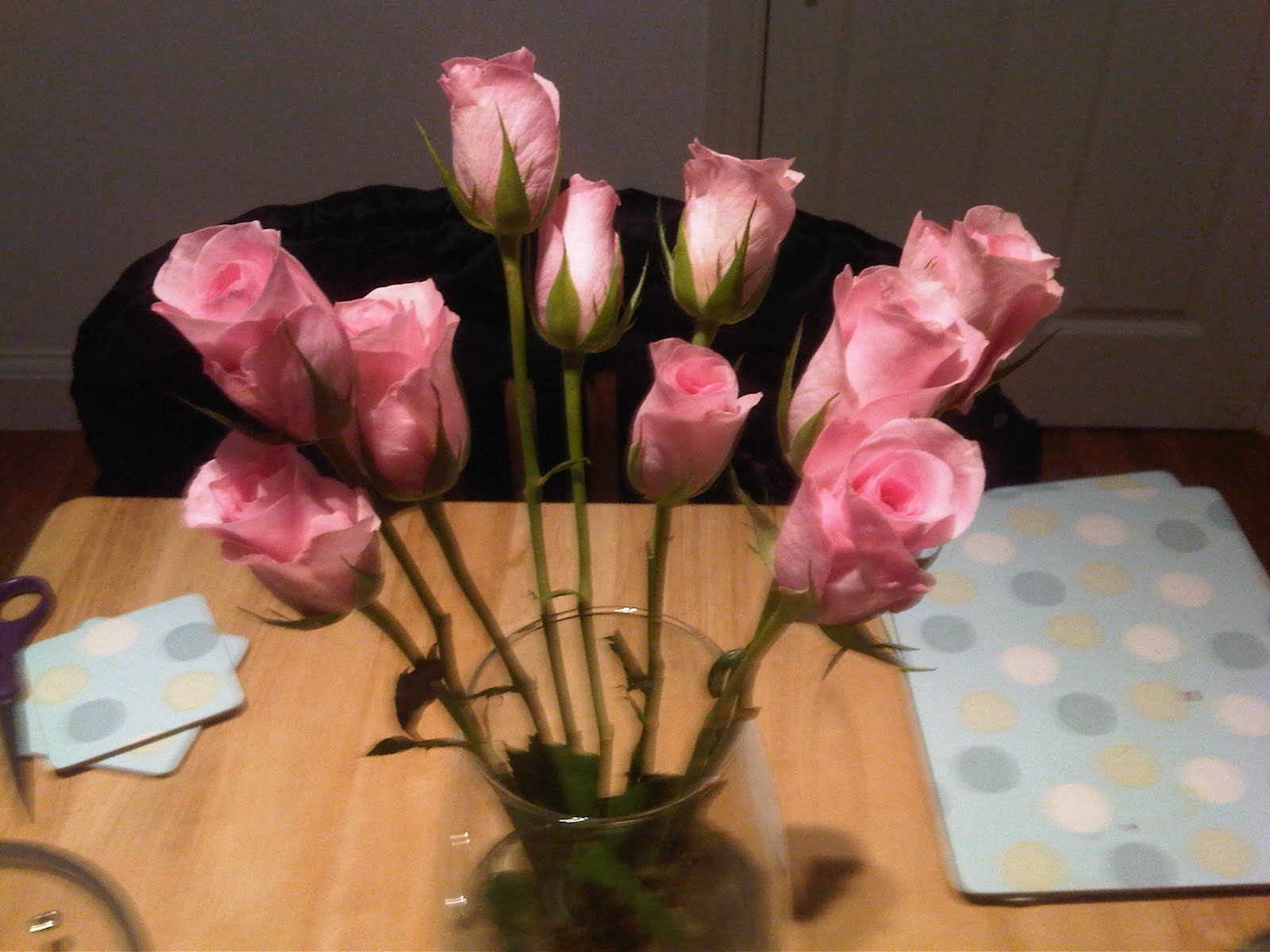 My husband always used to bring home flowers when we lived in New York, but since moving to London we hadn't even gotten a vase yet for our flat! I surprised him with a new vase and these pink roses! He loved them! They smelled lovely, even though these tiny pink roses were all I could get so close to Valentine's Day.