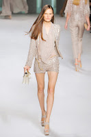 The sparkly trend isn't going anywhere this Spring. In fact, it's bigger and better than ever! Victoria Beckham showed a lovely sparkly dress and Balmain's collection featured a runway full of metallic capri pants, but I have to say, my favorite glitzy looks for Spring came from Elie Saab and Gianfranco Ferre!