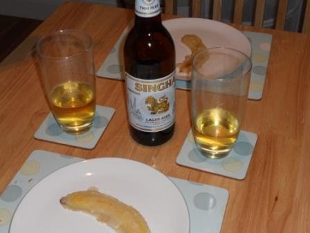 And for the 3rd course we went to Bali, but hard as he tried, hubs couldn't find an Indonesian beer, so he served a Thai beer instead, which I thought was a great accomplishment. This was my least favorite of the beers... Singha is way too sweet for my liking, but it was fun to try! We couldn't find any Balinese music, so we just kept the Hindi Pop blasting and danced away while moving onto the 3rd course!