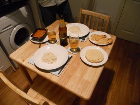 For the 2nd course we had Indian food. A Madras chicken curry with rice, naan bread and poppadums. It was delicious!!! He also switched the music to online Indian radio for some Hindi Pop music, which was super fun!