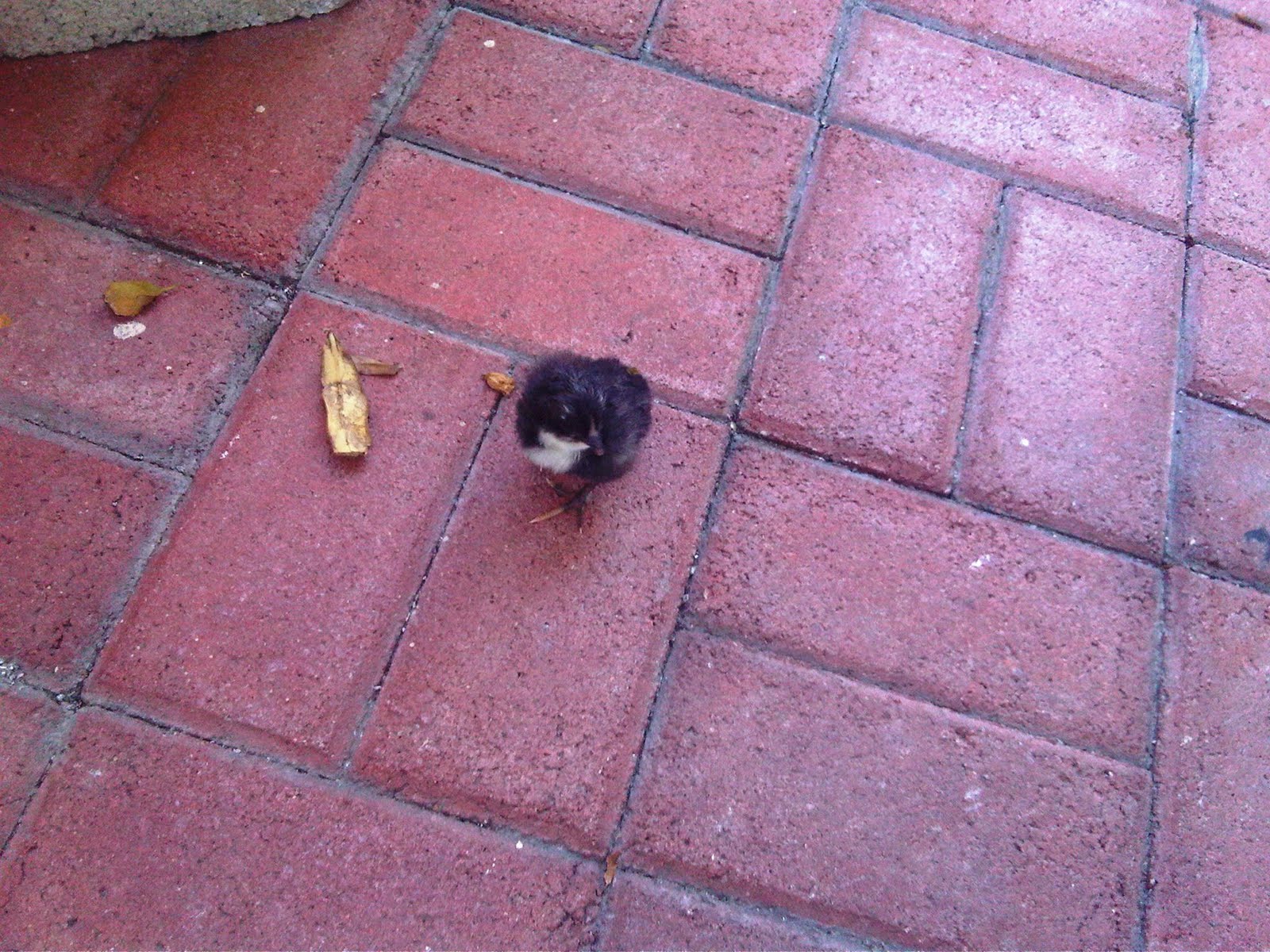Usually there are birds and chickens all over the place with their chicks, but this one was all alone! And he was crying! It was gut-wrenching to see! Every time someone would walk by, he'd run up to them and then upon seeing that it wasn't his mommy, he'd come back and start crying again. At one point, he ran so fast he lost his footing and nose dived flat on his face with his little wings spread out! Haha! So I gave him some crumbs from my Lean Cuisine Pizza while hubby went off in search of the chicken family that left this little guy behind... but he only came back with a box. He loaded baby Gismo into the box and walked all over town until he found a chicken family. He unloaded baby Gismo and he seemed to fit in with the others, so we rested assured that the family was reunited and our little friend would be safe! The only other option would be to sit him outside my office and then try to take him to Animal Rescue after work, but I think reuniting him with his family was better!And at 5:30, when we drove by the bank, Gismo was still there with all the other chickens, having a great time! Kind of exciting!