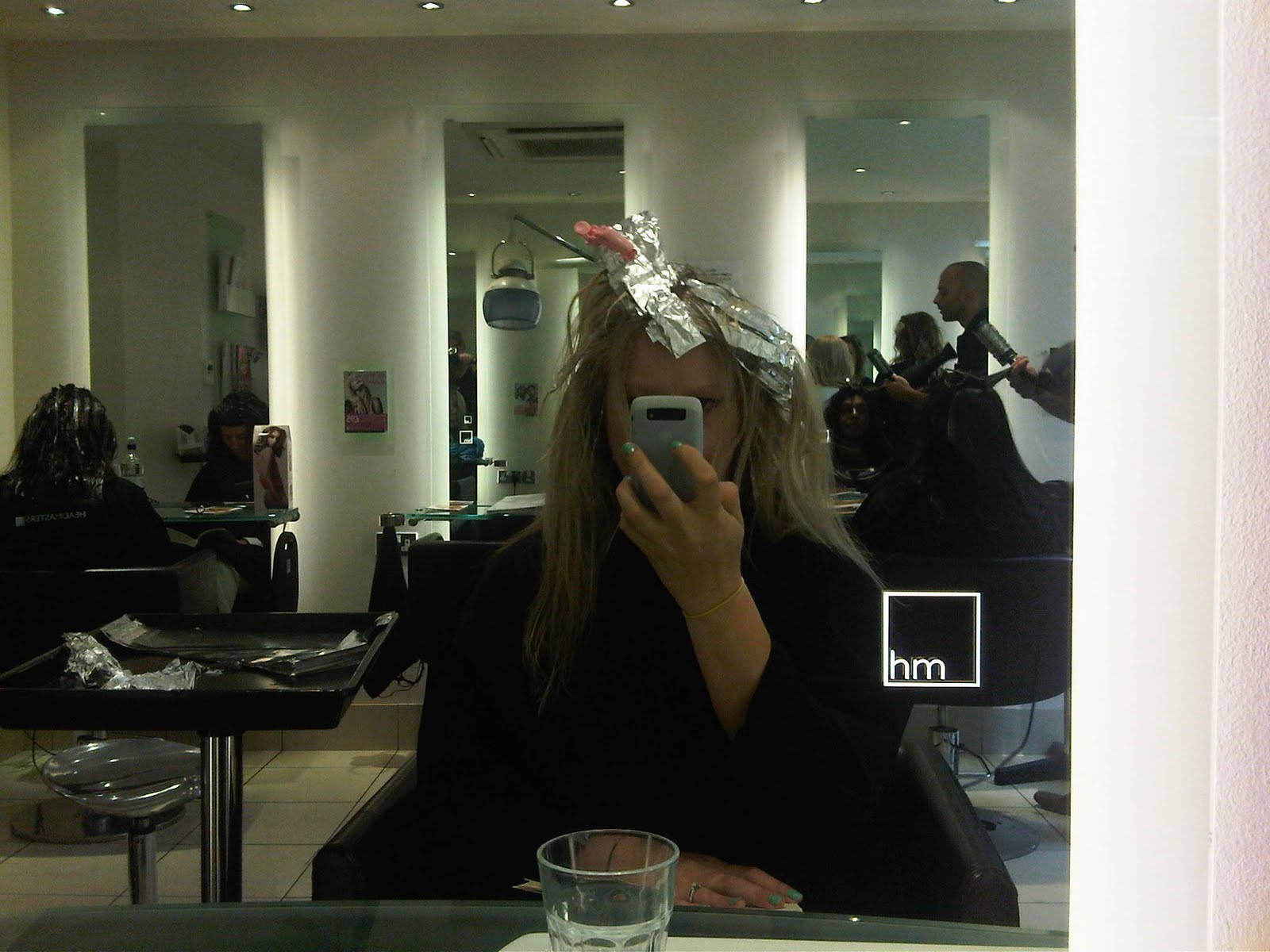 Above is a photo of my hair before my hair appointment yesterday that was taken about a week or so ago. I got pretty clever with covering up my roots, but I think you can see there was quite a bit of regrowth and an overall brassy messiness to my color. Also the ends were a disaster as I had only had 1 cut and no color since September last year. I'm a natural blonde, but it's a little dingy naturally, so I generally get it lightened up about 2 to 3 times a year.