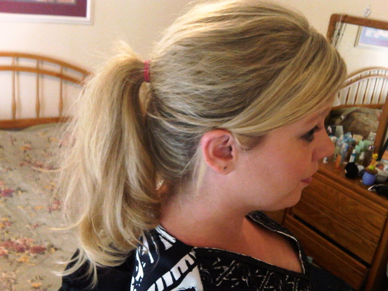 I love this dress because for me, it's a versitile piece! When it was cooler, I wore it with tights as seen here. Now that it's hotter than the 7th circle of Hell on this island, I'm rockin legs instead! (PS - I can't believe I live on a tropical island and have these pale legs... I've never noticed! TIME FOR TANNING!) I also love this dress because I can wear it to work with or without tights and a sensible pair of pumps or flats, but with fancier shoes, a sassy clutch and fabulous accessories, this dress could easily be an evening piece!I was pretty proud of my messy ponytail... I know it could be better, but I thought it was cute and with a heavy layer of hairspray, it withstood even the nastiest island wind today and still looked good when I got home today. Pay no mind to the red ponytail elastic... I normally match them or use a blonde color, but today I was in a hurry, so something had to give!