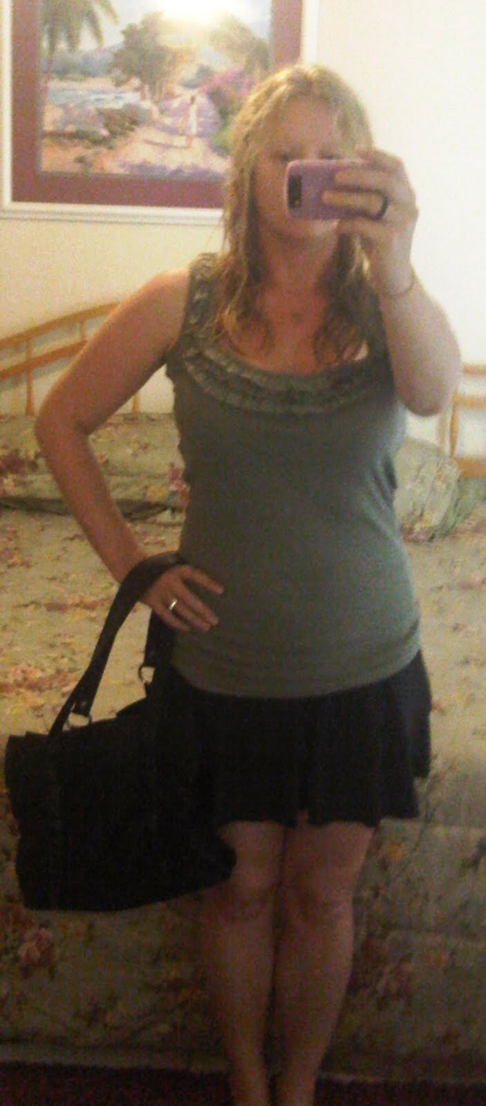We only watched Whiteout and Thaw. Both were pretty good. Whiteout was my favorite and I thought it would be awful, but it was interesting! Thaw was disgusting but totally scary! It's about a parasite that killed off the Wooly Mammoth and then returns when global warming causes the ground where the mammoth was buried to thaw. The parasites breed in flesh and hatch eggs so all these bugs come out and eat people from the inside out! Totally disgusting, but interesting concept! I felt itchy and creepy crawly for an hour afterwards and then dreamed about bugs! GROSS! Not for the squeemish at all!We got up early for breakfast and the 12:30 showing of SATC2 on Saturday. A bit of a date! It was great fun! We started with breakfast at Treats, which I'd heard was amazing. It cost over $30 Cayman Dollars (nearly US $40) for two of us to have breakfast and mine was disgustingly greasy and the potatoes were especially icky. I wouldn't go back. It was so expensive for glorified diner food and the coffee was also gross. In fairness, if the coffee sucks, it's game over for me... But we didn't let it ruin the day. It was a casual Saturday outting so I dressed super comfy and cool for the hot weather. Excuse my no make-up and hair... this was my only chance for a photo.