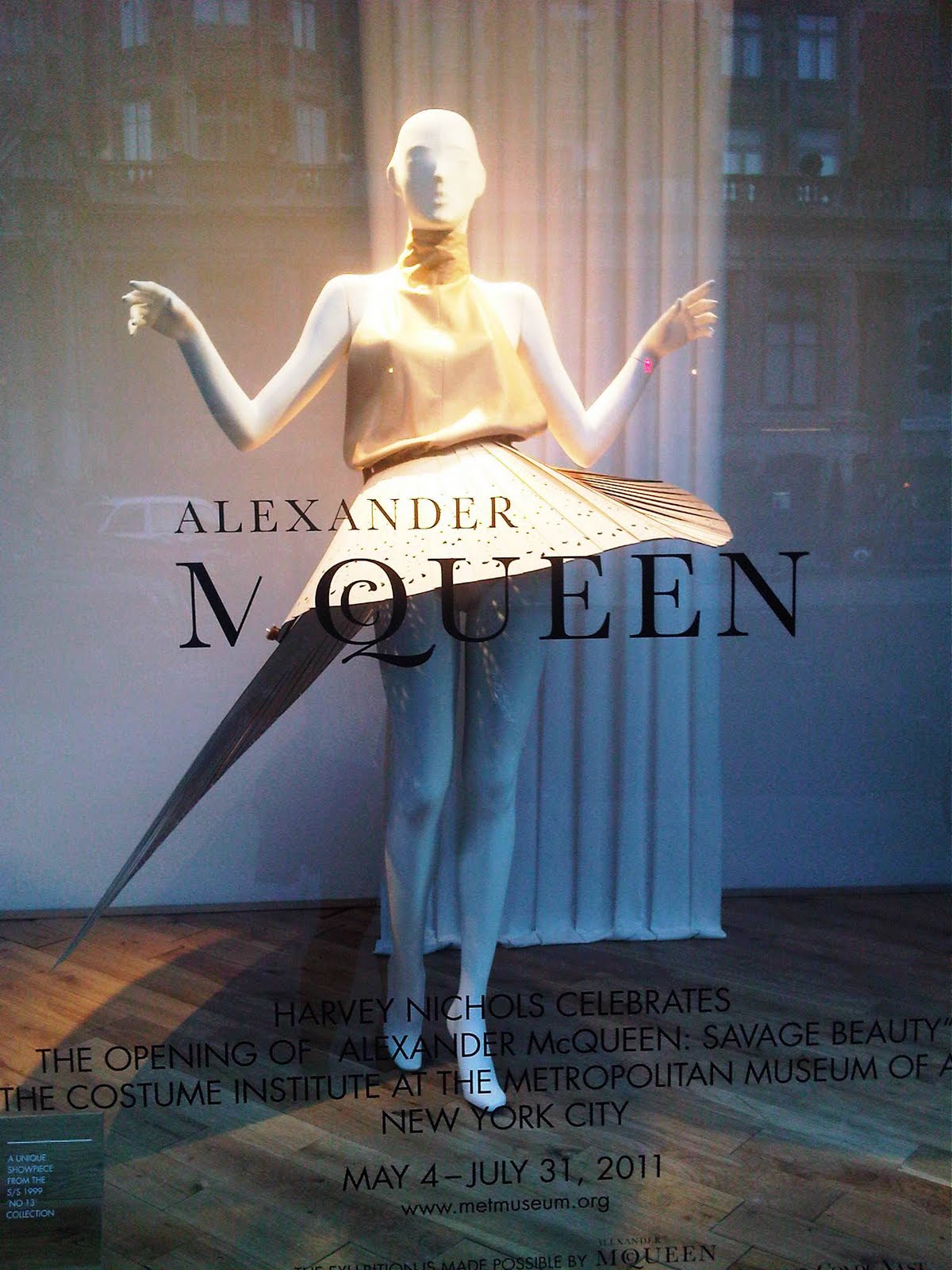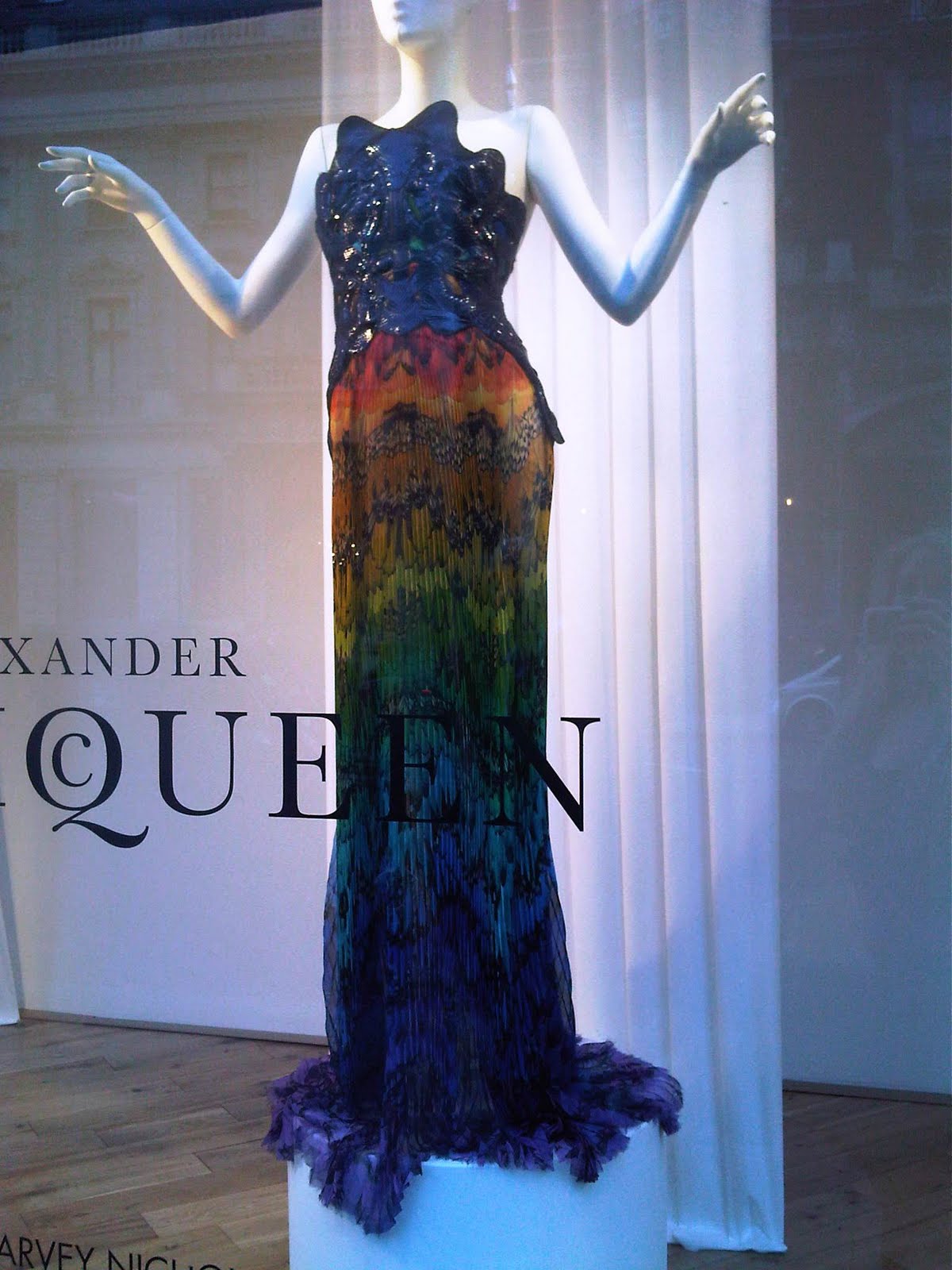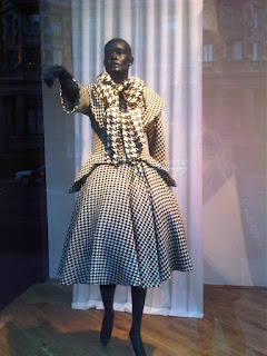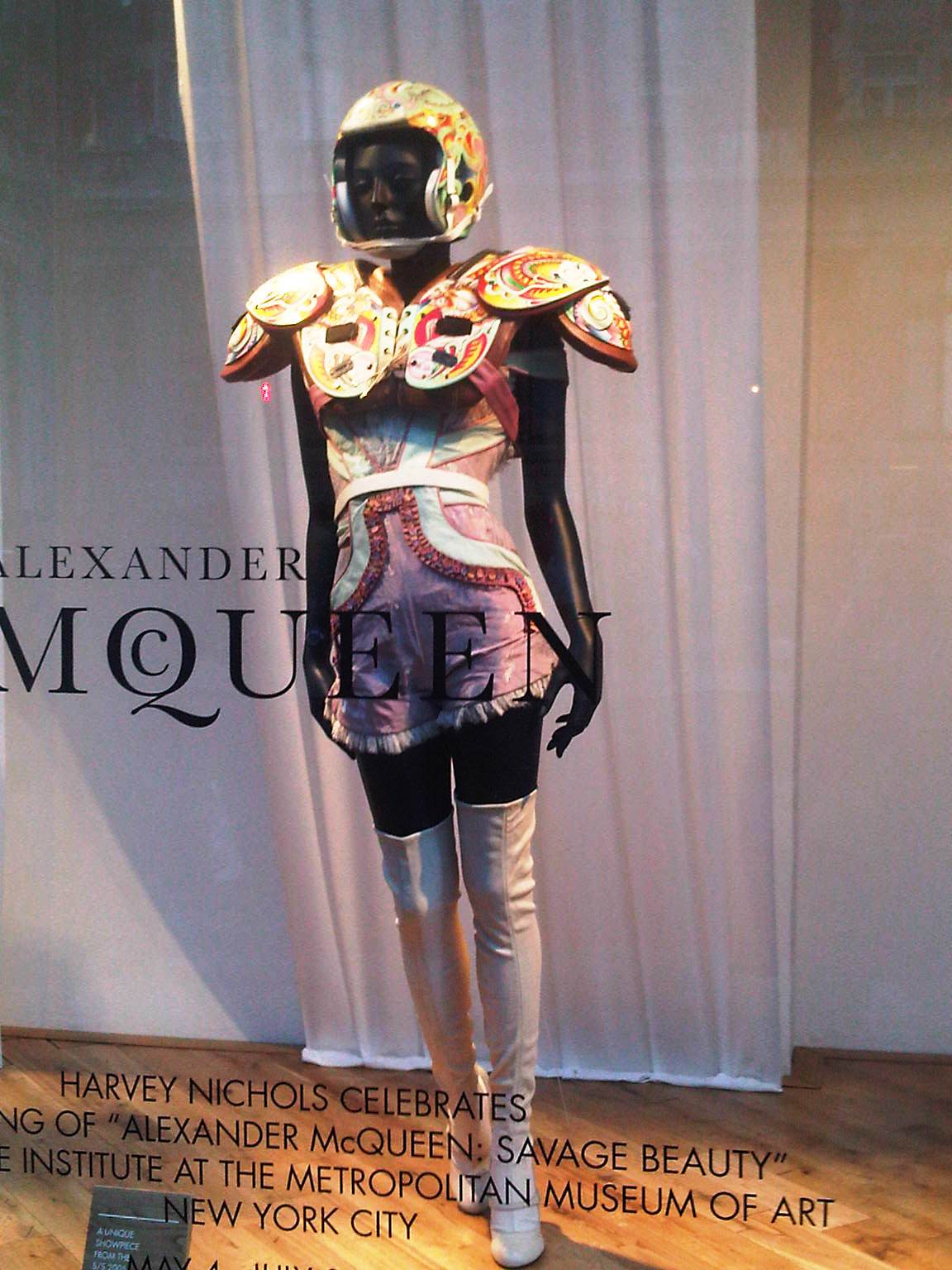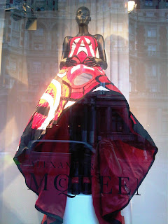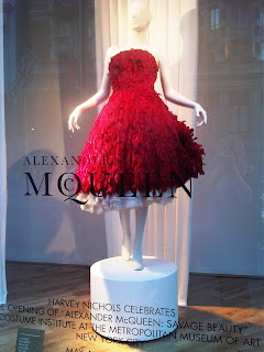 My favorite part of being at the event was seeing the windows at the Harvey Nichols Knightsbridge store! They had their windows decorated with fashions from various Alexander McQueen shows in celebration of the Met Museum's "Savage Beauty" exhibit, which I just read has been extended to August due to high demand for tickets!