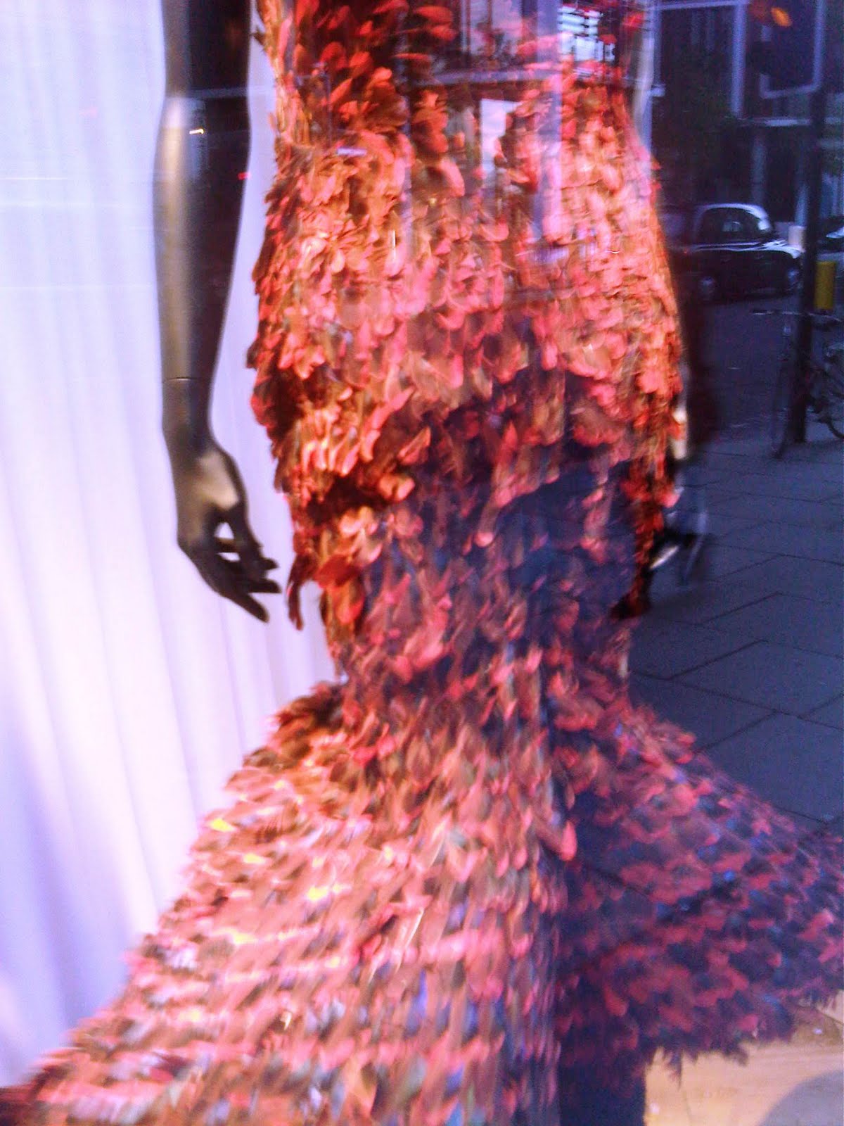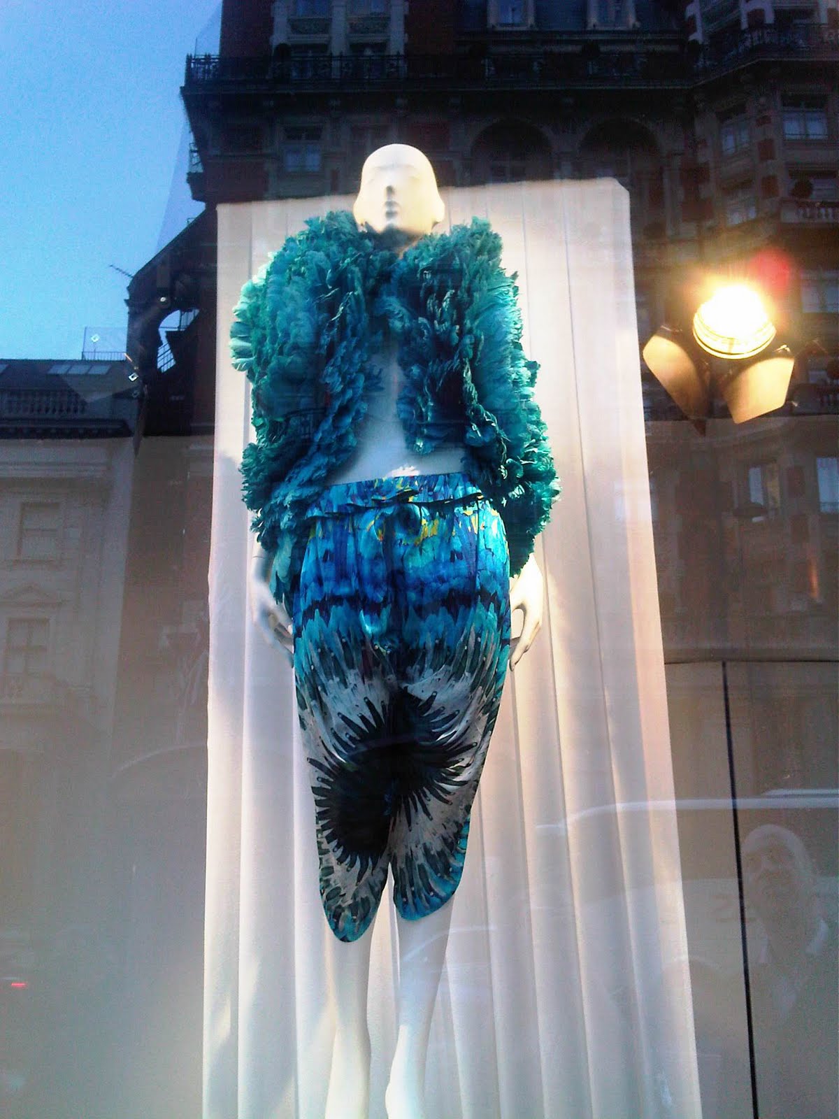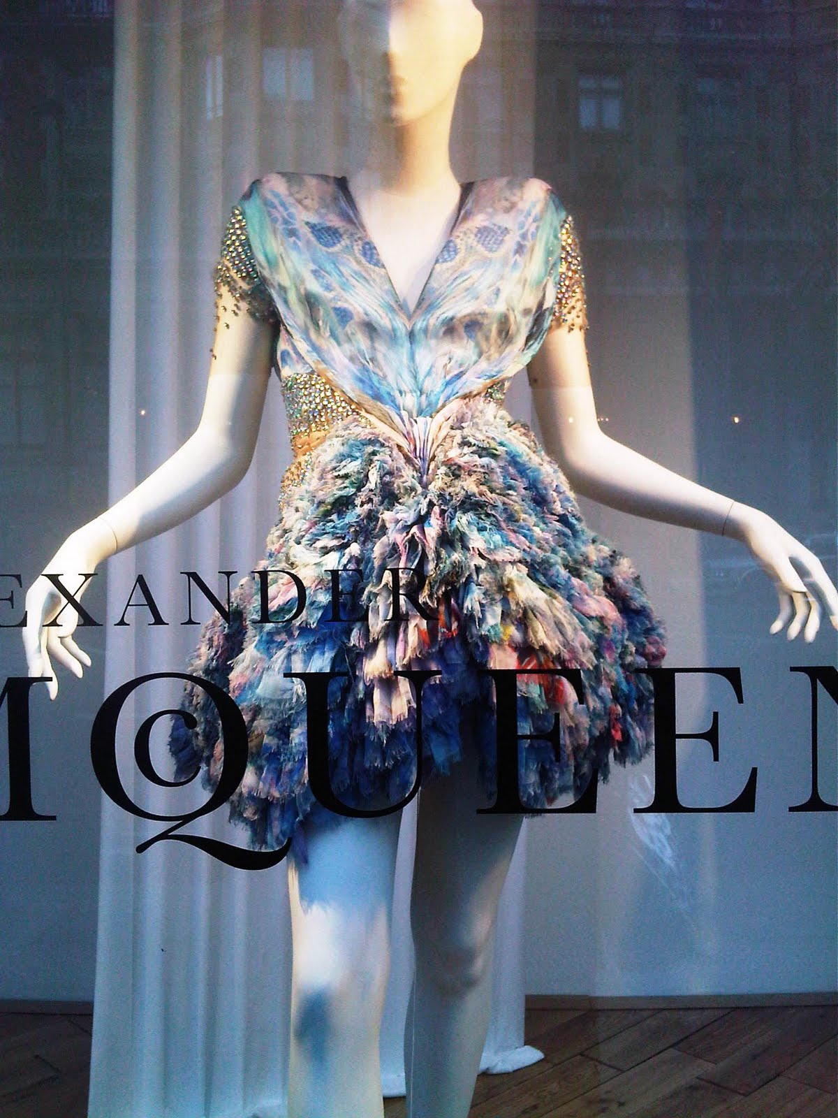 My favorite part of being at the event was seeing the windows at the Harvey Nichols Knightsbridge store! They had their windows decorated with fashions from various Alexander McQueen shows in celebration of the Met Museum's "Savage Beauty" exhibit, which I just read has been extended to August due to high demand for tickets!