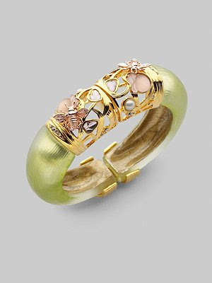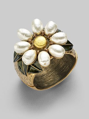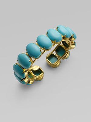 Recently I posted about my unending love of cocktail rings to punch up an outfit. If you missed it, you can read it here. Well, I feel the same about a fantastic bracelet, particularly cuffs! A bright cuff and lighten up any gloomy outfit! An edgy cuff can add the right amount of edge without making you look like a member of Hell's Angels. Or a blingin cuff might add the right amount of sparkle for evening when a necklace just won't do! Here are some fabulous cuffs and bangles I found at Saks that I'm loving right now: