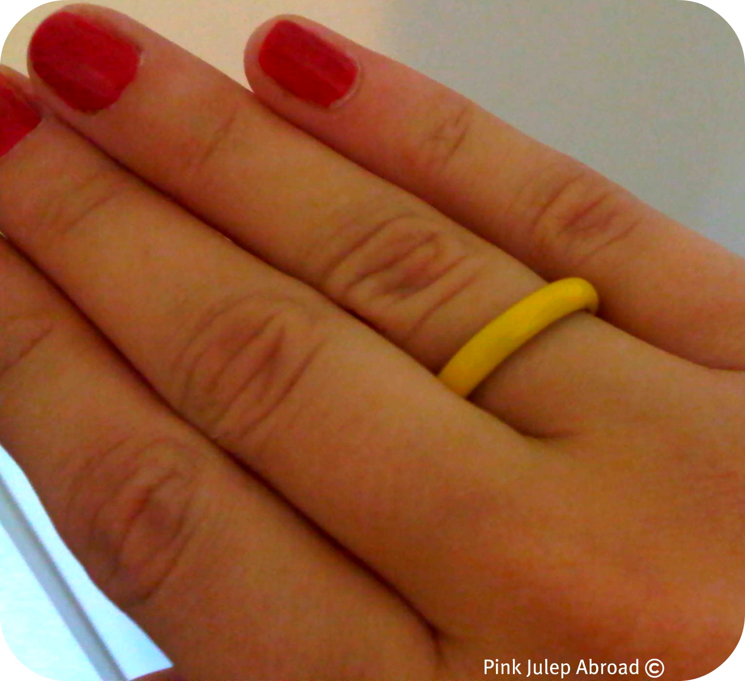 I love red nails and/or lips with yellow! However, I can't stop thinking that my hand combo looks a little like ketchup and mustard.