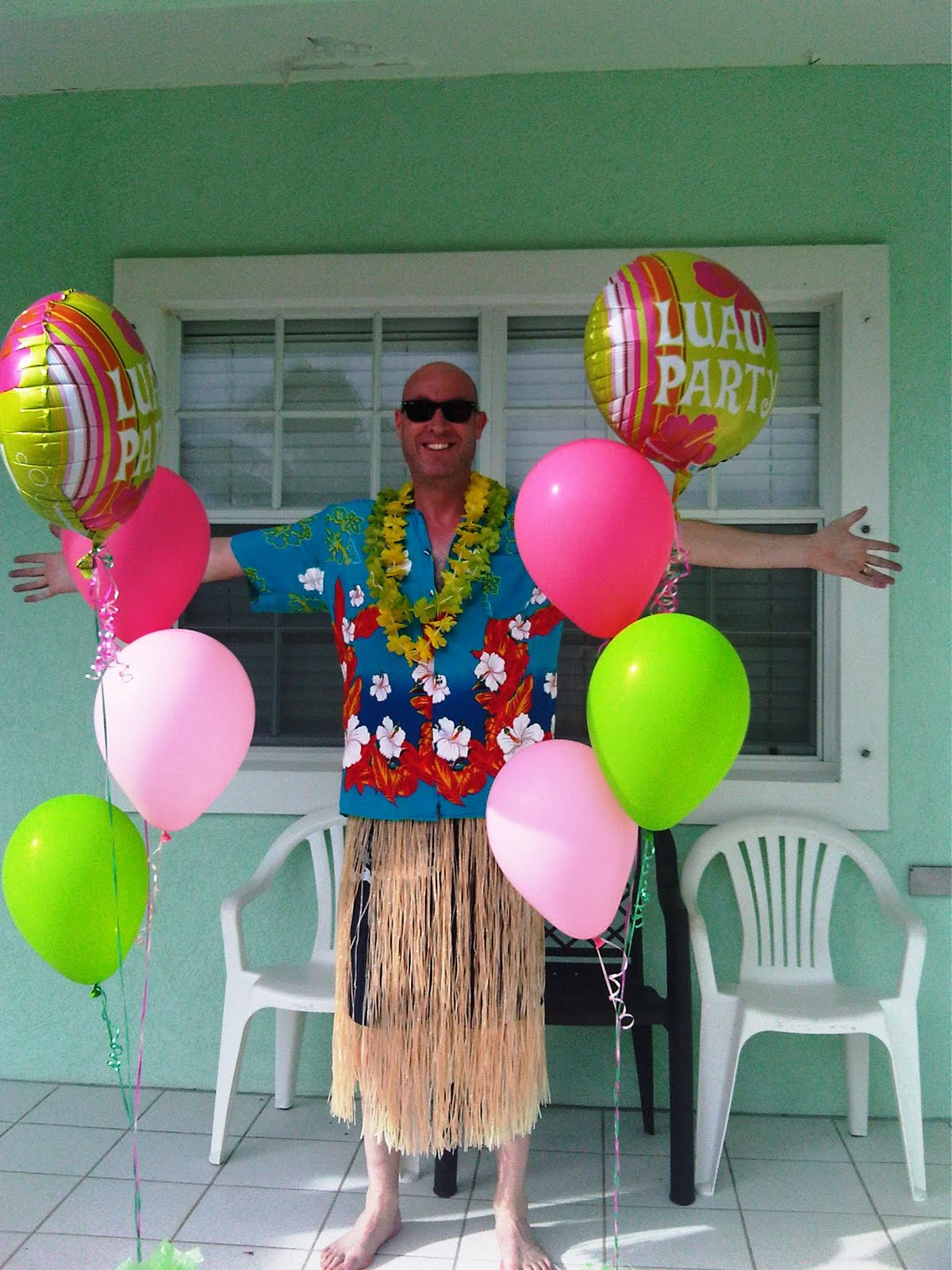 My husband is such a good sport! He actually wanted to wear a grass skirt!