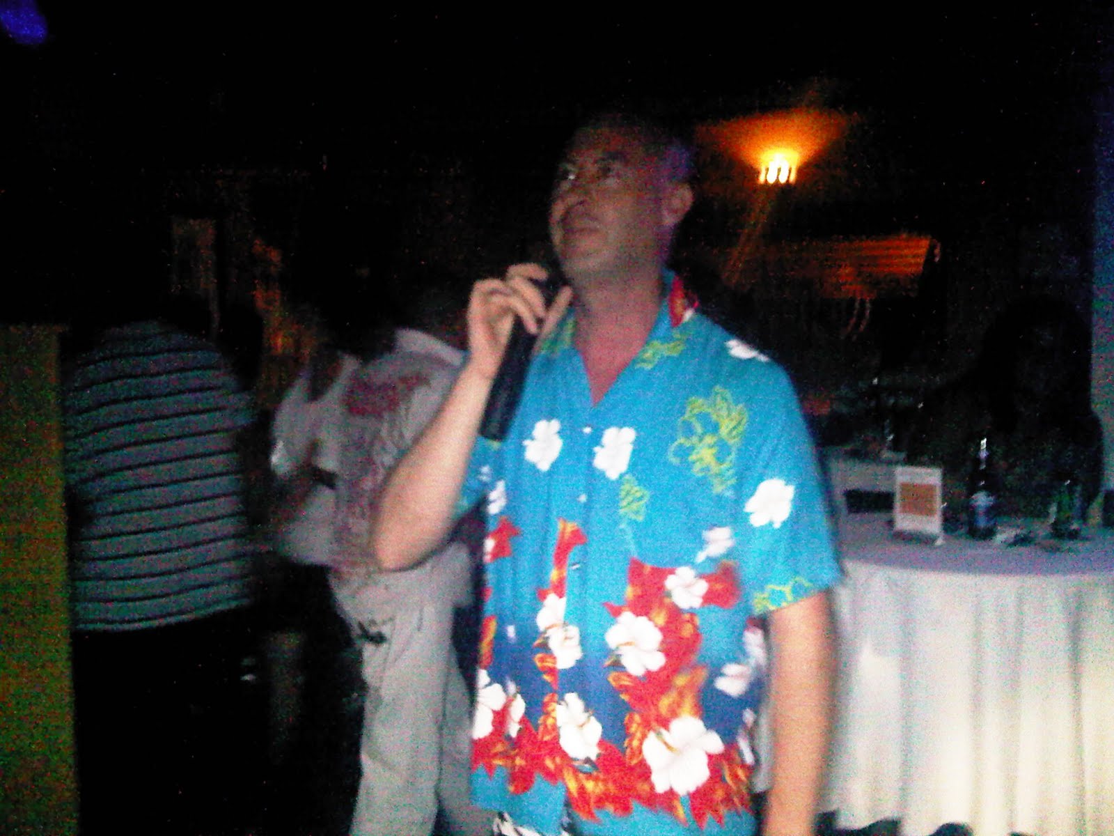 When the party started winding down, we piled about 10 people (some of our closer friends here) into a taxi van and we went to our favorite Cayman nightlife spot, The Office Lounge for karaoke Saturday night. This is a picture of Marc singing Folsom Prison Blues by Johnny Cash!