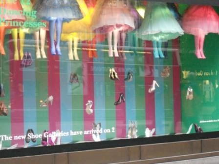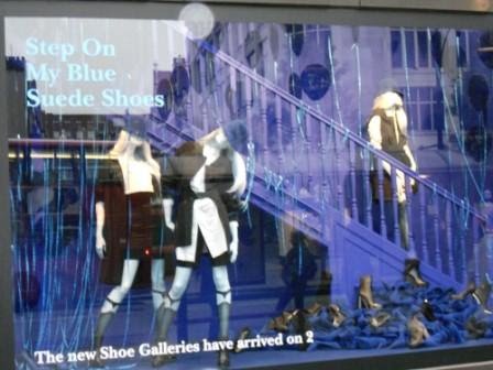 Selfridge's in London on Oxford Street just recently launched the world's largest shoe gallery and in celebration of this feat, the windows of the classic London department store were all bedecked in shoe themes! Walking along Oxford Street, I couldn't resist taking photos! These windows are too fabulous to miss! The above window's theme is Blue Suede Shoes